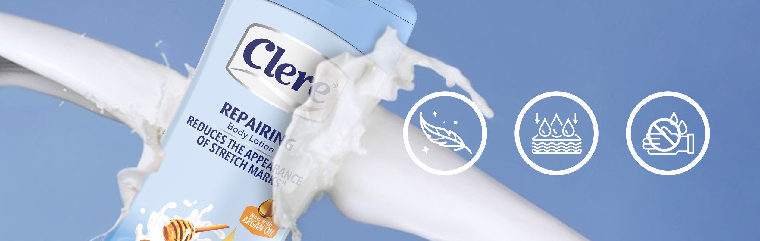استمتعي بترطيب فائق لبشرتك مع لوشن الجسم بالفانيليا و العسل من كلير. مدعم بزيت الجلسرين و الفيتامينات A و E و خليط من الفيتامينات الأخرى لمحاربة علامات التمدد و جفاف البرشة