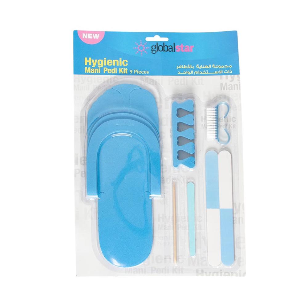 مجموعة العناية بالأظافر من جلوبال ستار للاستخدام مرة واحدة تحتوي على مقلم أظافر خشبي, طلاء أظافر (ملمع أظافر) ذو استعمال مزدوج, منظف للأظافر, فرشاة للأظافر, فاصل أظافر القدمين, خف.