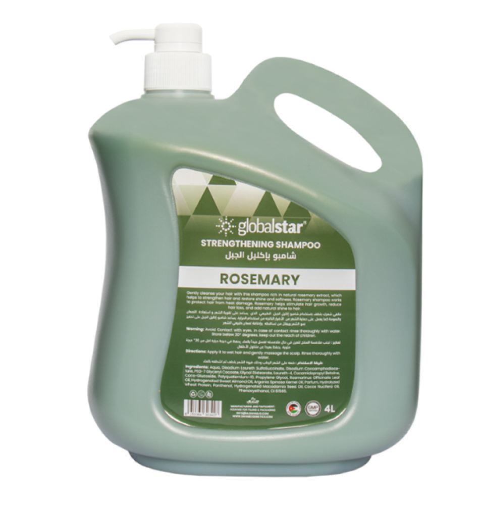 استمتعي بتجربة تنظيف منعشة ومنشطة لشعرك مع شامبو شعر برائحة باكليل الجبل من جلوبال ستار. تمتاز تركيبته الفريدة بمزيج من مستخلصات اكليل الجبل والمكونات المغذية لتنظيف فعال وتنشيط فروة الرأس وتعزيز صحة الشعر.