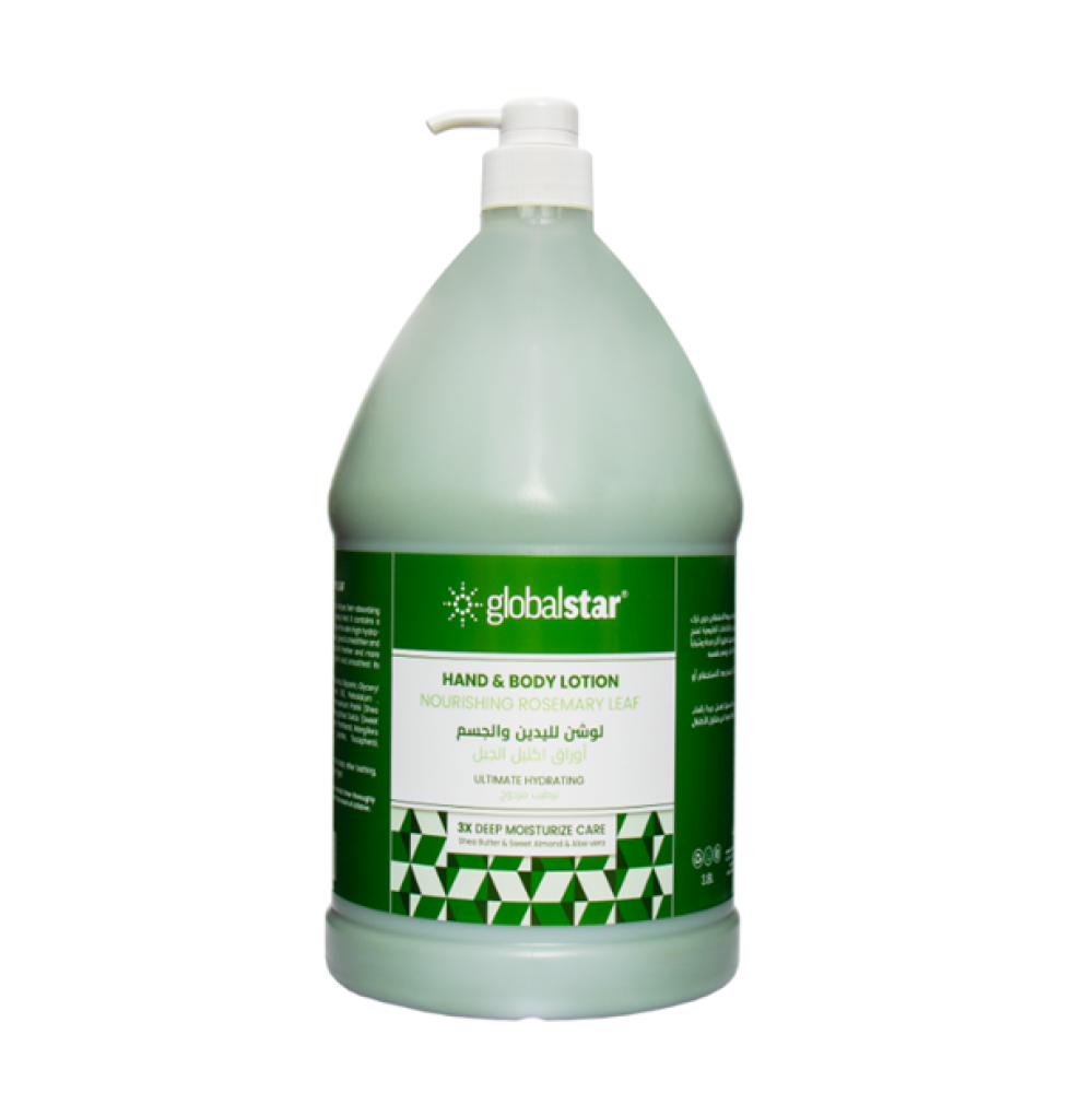استمتعي بتجربة منعشة للعناية بالبشرة مع لوشن لليدين والجسم بالروزماري من جلوبال ستار. يتميز هذا اللوشن برائحة الروزماري المنعشة والمنشطة، وتركيبته الخفيفة التي ترطب البشرة بعمق دون ترك أي احساس دهني.