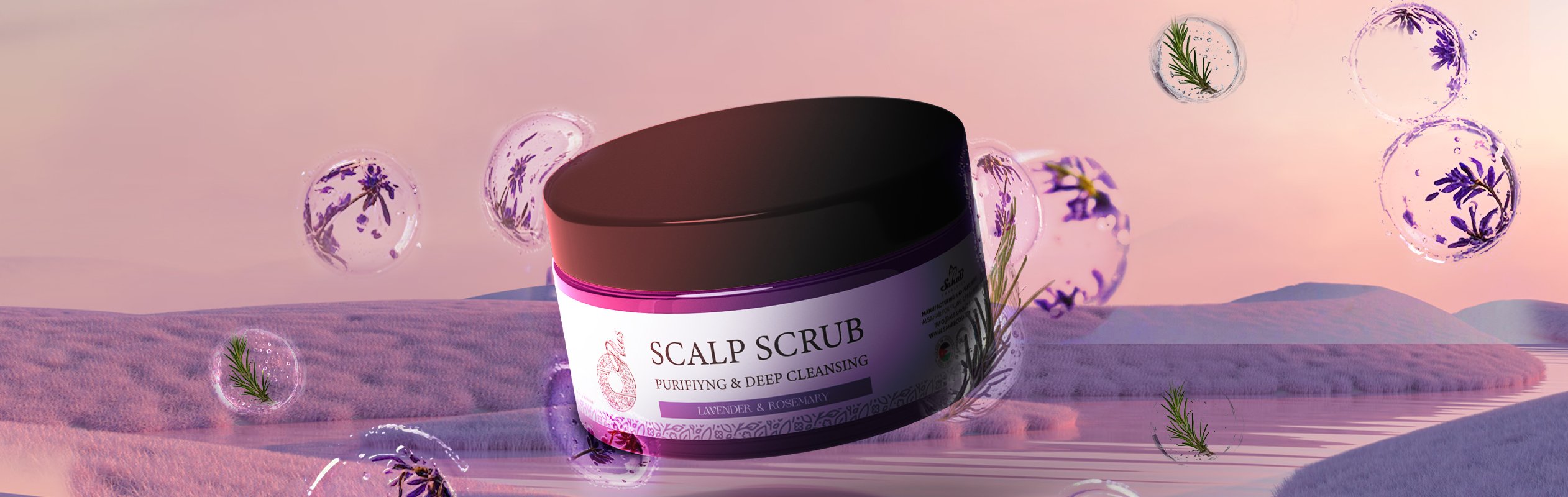 - اسم المنتج: مقشر فروة الرأس بزيت اكليل الجبل واللافندر.